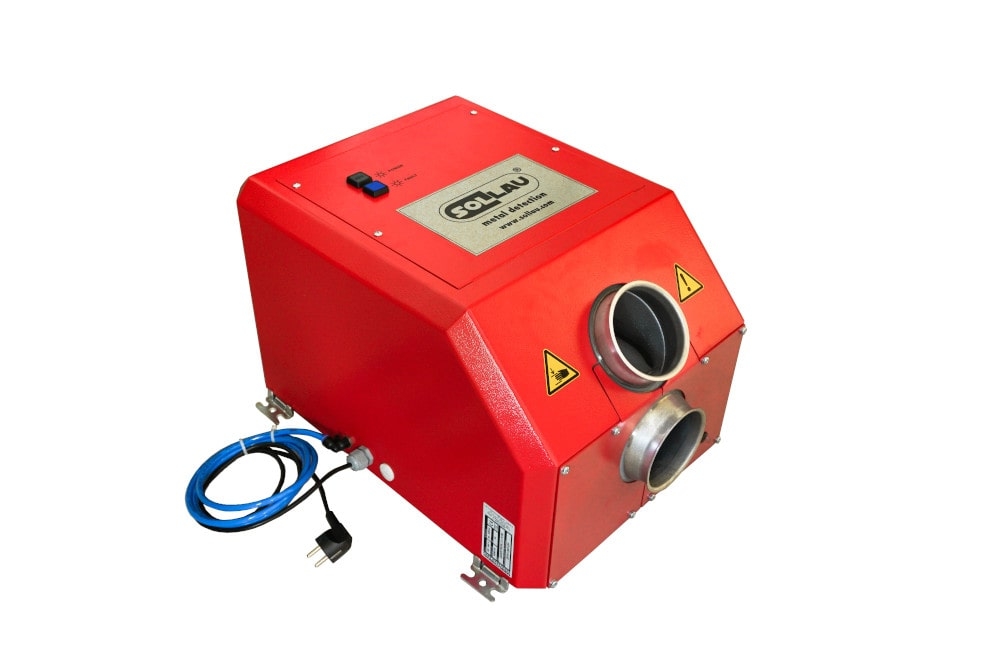 З бункера металошукача матеріал падає через детекторну поверхню з високочутливими електромагнітними котушками, сигнали від яких передаються на керуючий мікропроцесорний блок. У разі виявлення металевого об'єкта, що перевищує задану чутливість, блок управління активує пневматичну заслінку викиду, яка перенаправляє невелику кількість матеріалу, що містить забруднюючі речовини, в контейнер для відходів, а потім повертається у вихідне положення. Час, на який сепараційна заслінка відводить потік матеріалу в контейнер для відходів, можна запрограмувати згідно потреби.