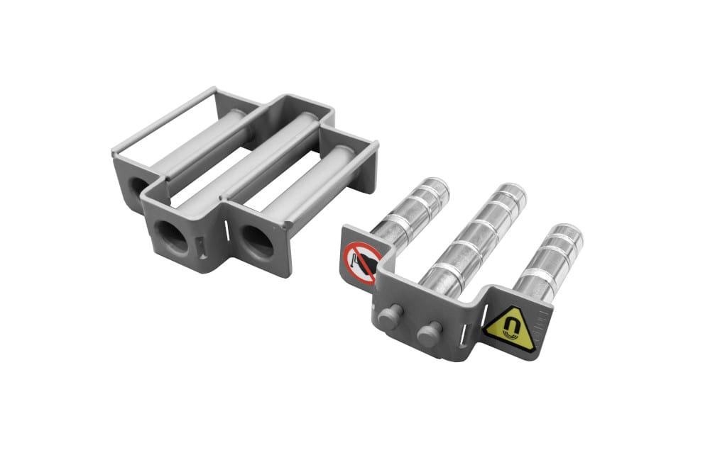 Магнітна решітка для бункера ливарної машини використовується для відокремлення феромагнітних частинок від потоку вільно падаючого матеріалу (регранулят, крихта тощо). Сепаратор захищає від пошкоджень ливарні машини з класичним конусоподібним завантажувальним бункером (запобігає потраплянню металевих частинок в шнековий і форсуночний механізми).
